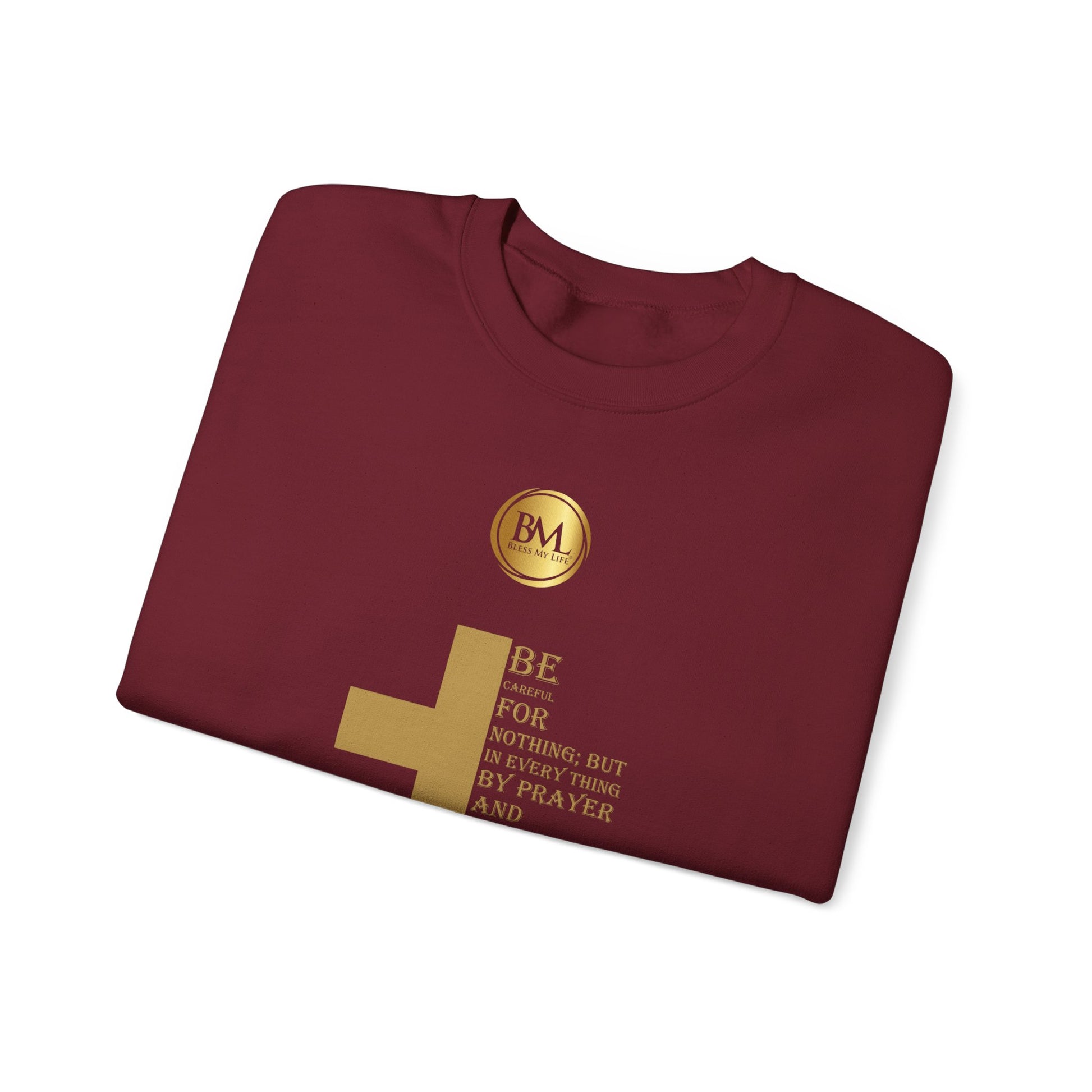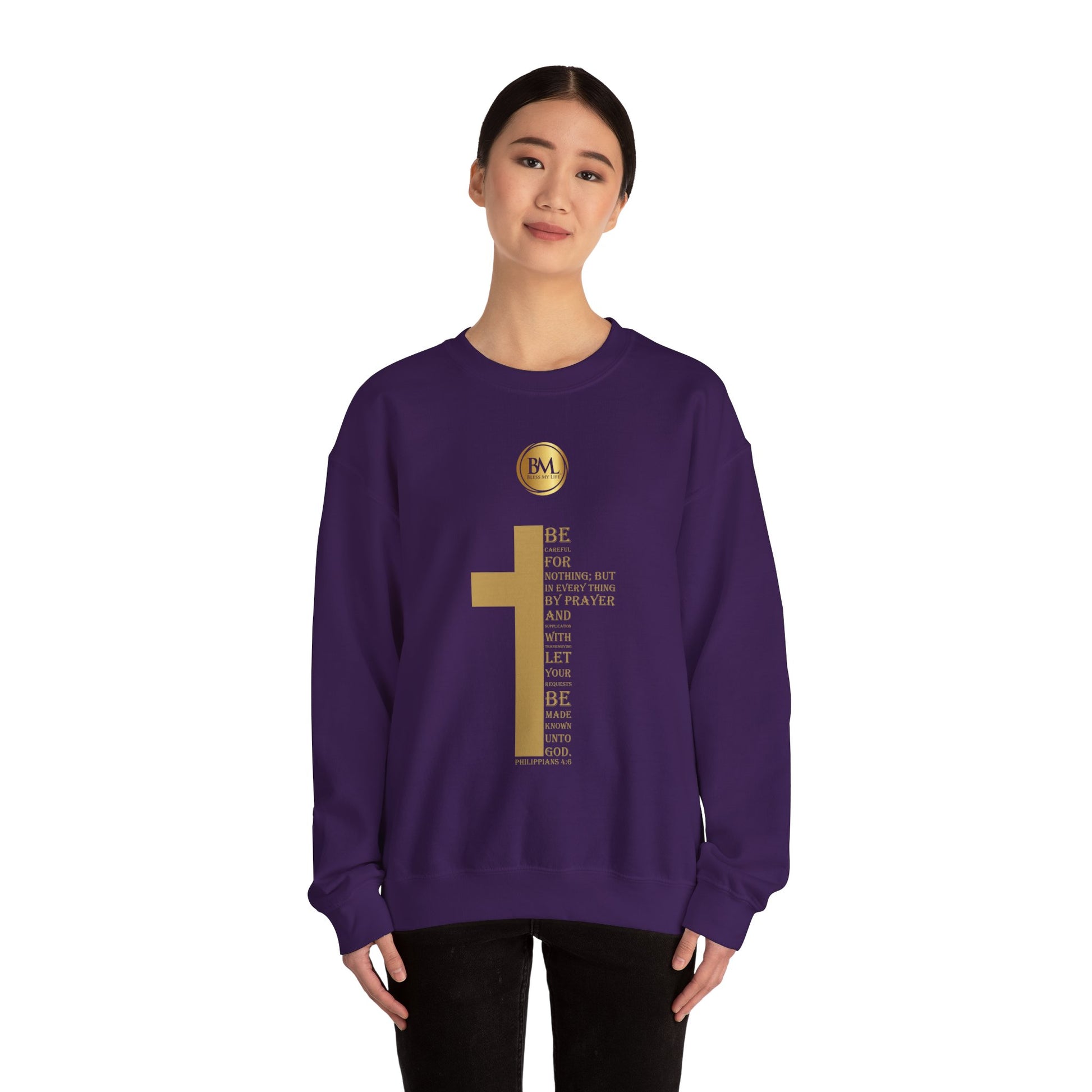 Be careful for nothing; but in every thing by prayer and supplication with thanksgiving let your requests be made known unto God, Bless My Life ® Philippians 4:6 Crewneck Sweatshirt